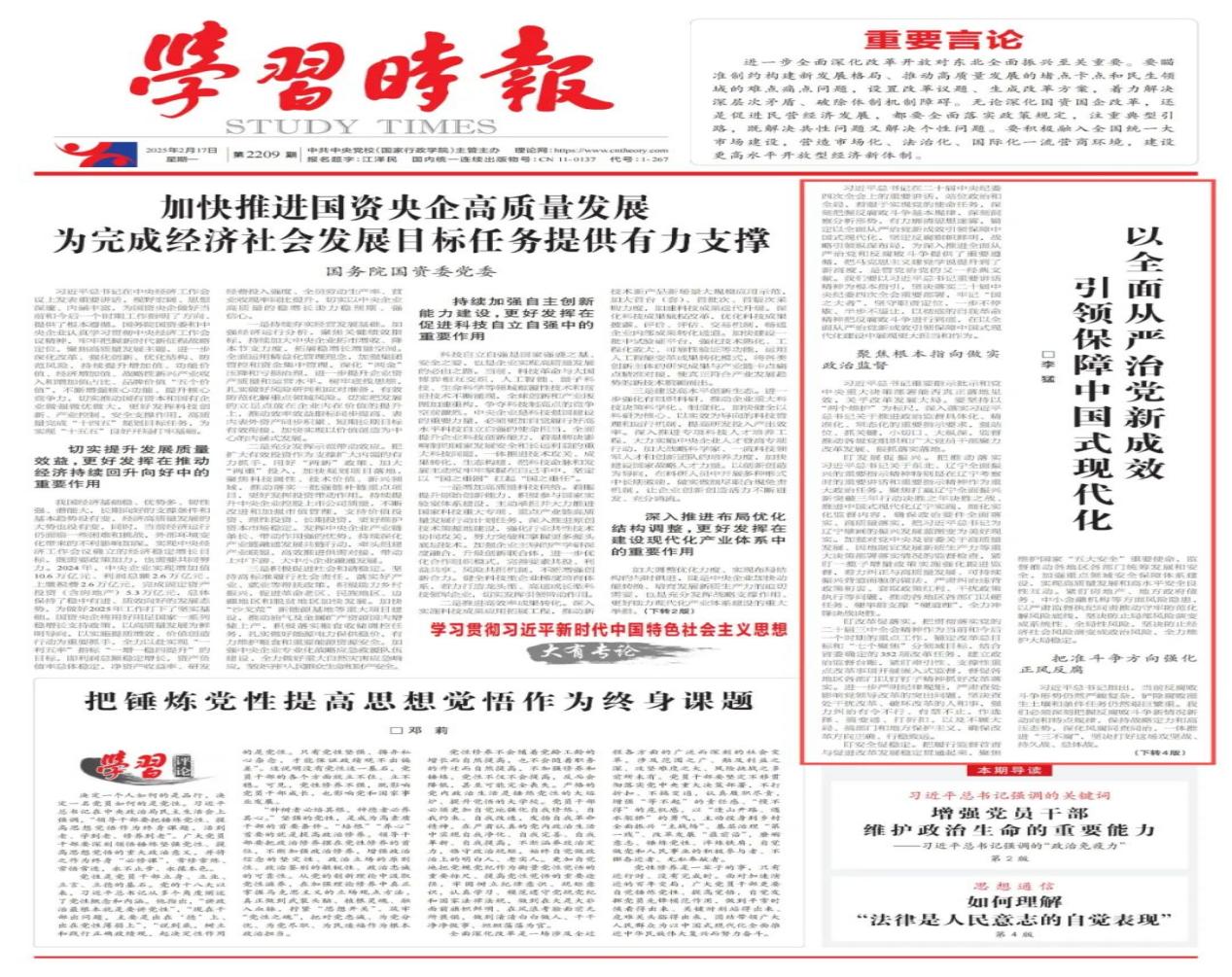 2月17日,《學(xué)習(xí)時報》頭版刊發(fā)遼寧省委常委、省紀(jì)委書記、省監(jiān)委主任李猛署名文章《以全面從嚴(yán)治黨新成效 引領(lǐng)保障中國式現(xiàn)代化》。全文如下: